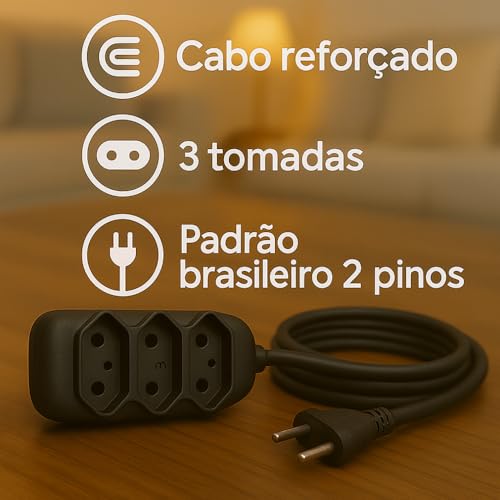 - 🔒 Plugue Seguro e Confiável: Encaixe firme que evita mau contato e garante energia estável para seus aparelhos.
