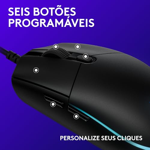 Mouse Gamer Logitech G203 RGB – 8.000 DPI, 6 Botões Programáveis