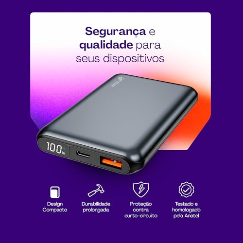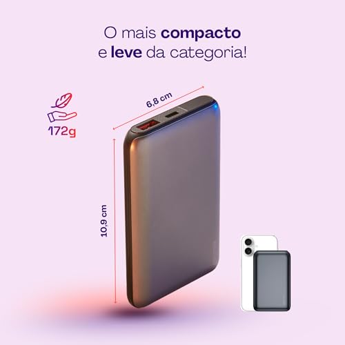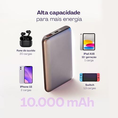 - Capacidade Potente: 10.000mAh para recargas rápidas e eficientes.