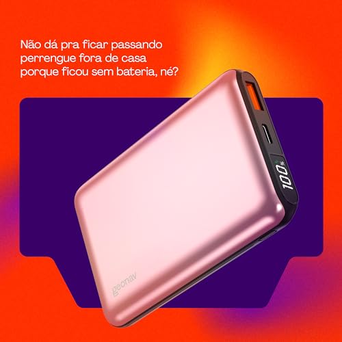 Power Bank Geonav 10.000mAh – Carregamento Rápido Rosa