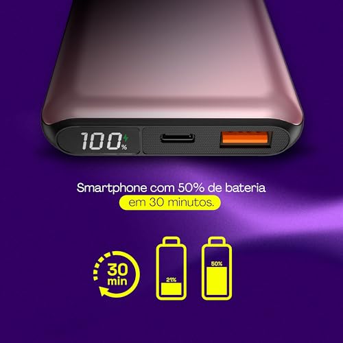 - Display LED para monitorar o nível de bateria e status de carga rápida.