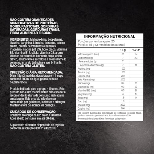 - Usos Específicos: Suplemento pré-treino