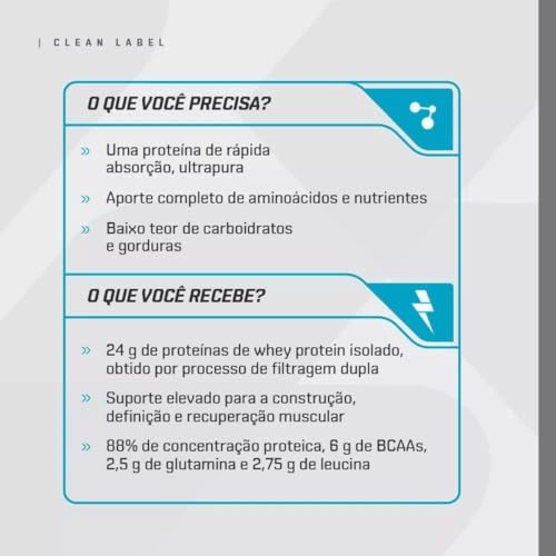 • Proteína 100% Pura: Duplamente filtrada, sem adição de outros tipos de whey ou proteínas inferiores.
