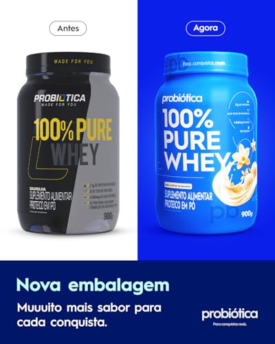 Descubra o poder da proteína com a 100% Pure Whey da Probiótica, agora em uma nova fórmula deliciosa de baunilha. Este produto é ideal para quem busca aumentar a ingestão de proteínas de forma prática e saborosa.